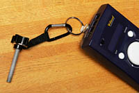 ![]() I used the battery compartment screw to affix an encoder cable clip to the Argo Navis. The Argo Navis is well built and has a high quality screw that treads into metal receiving threads. I used the encoder cable clip to hold a split ring key for attachment. See the next photo legend for details. Note: The Argo Navis comes with a mounting holster and screws/velcro strips to mount the holster to the telescope. If you are mounting the computer on your upper cage, however, the suggested method isn't secure as you raise and lower the telescope. |