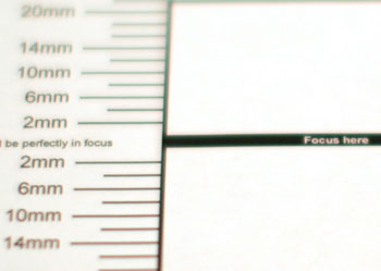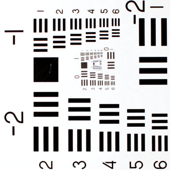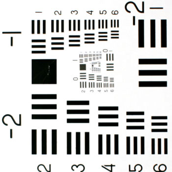 Test with USAF 1951 Test Chart at 90 Degrees to Target - 46 cm working distance shows decreased resolution with autofocus due to backfocusing