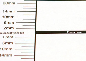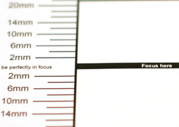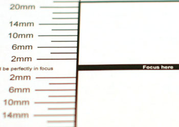 Test with Jackson 2004 FocusTestChart at 45 Degrees to Target - 46cm working distance shows backfocus