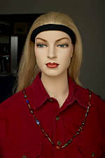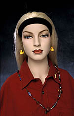 Lighting varies between mannequin shots. Focus comparison on eye and necklace detail.