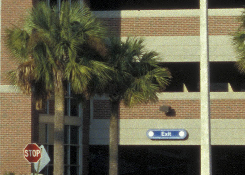 Comparison of image detail and sharpness with EOS-1Ds, EOS-1D Mark II, 20D, D60 and EOS-1V with Astia 100F film.. All images were produced at ISO 100 with EF 28-70mm f/2.8 L lens at f/8, aperture priority, evaluative metering, automatic white balance on the same late afternoon. Partly cloudy conditions resulted in slight lighting variation (e.g., lighting was brightest during the EOS-1Ds exposures). Cameras were in sRGB color space with standard factory parameter settings. Three exposures were taken, and the sharpest image was selected to minimize effects of autofocus variation. All digital images shot in RAW and converted to 300 dpi tif with C1 Pro v. 3.5 with exception of the 20D images which were converted with Canon DPP v1.1. Cropped section converted to 72 dpi pixel image in Photoshop 7. Astia 100F Negatives were scanned with Nikon Super Coolscan 4000 ED scanner with autoexposure function with post-scanning adjustment of contrast and brightness. All images subjected to slight unsharp mask. Note: The lower shadow detail in the 20D images is most likely accounted for by differences in RAW processing software (C1 Pro vs. DPP) rather than camera differences. RAW 20D images will be reprocessed and posted here once Phase One updates C1 Pro for the 20D.