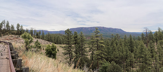 A view of the Mogollon Escarpment in the distance from a pullout on AZ 260 driving East of Payson. |