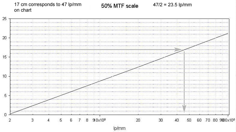 chart, the lp/mm value is divided by 2 to generate the 50% MTF value.