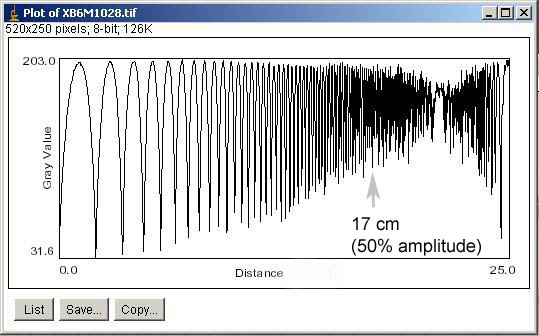 Plot Profile to determine line pair per mm frequency of 50% contrast as