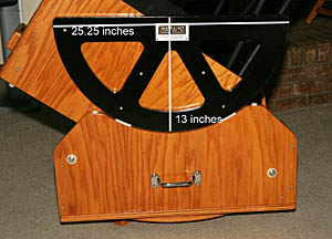 I started to take measurements on my telescope to find out the best JMI encoder mounting kit or combination that might be work on my Starmaster. Initial surveys and questions in September, 2005 revealed that neither JMI representatives nor Gary Kopff at Wildcard Innovations had a stock recommendation for encoder hardware kits for Starmaster telescopes. They told me that the JMI encoder kit for the 18" Obsession telescope would not mount on my Starmaster. I took initial measurements to have Gary Kopff recommend JMI encoders that might work with my system.
