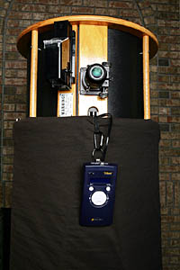 ![]() Argo Navis on 18 inch Starmaster. With the computer mounted from the upper cage, you always have the computer accessible at hand near your focuser, eyepiece and Telrad. This is particularly handy when you are touring an area of the sky while standing on a ladder. |