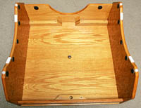 ![]() The one minor problem with the Sky Engineering encoder mounting kit is that the holes for the elevation coupler just barely allow the wood screws to purchase the altitude bearing on the Starmaster. The Starmaster name plate has been removed to allow the coupler to sit flat and orient the encoder shaft hole as close to perpendicular on the bearing surface as possible (paint chipped out where the name plate had been attached). Rick Singmaster avoids this hole alignment probem with a custom machined aluminum coupler that mounts over the name plate and has holes drilled farther away from the edge. See photo. |