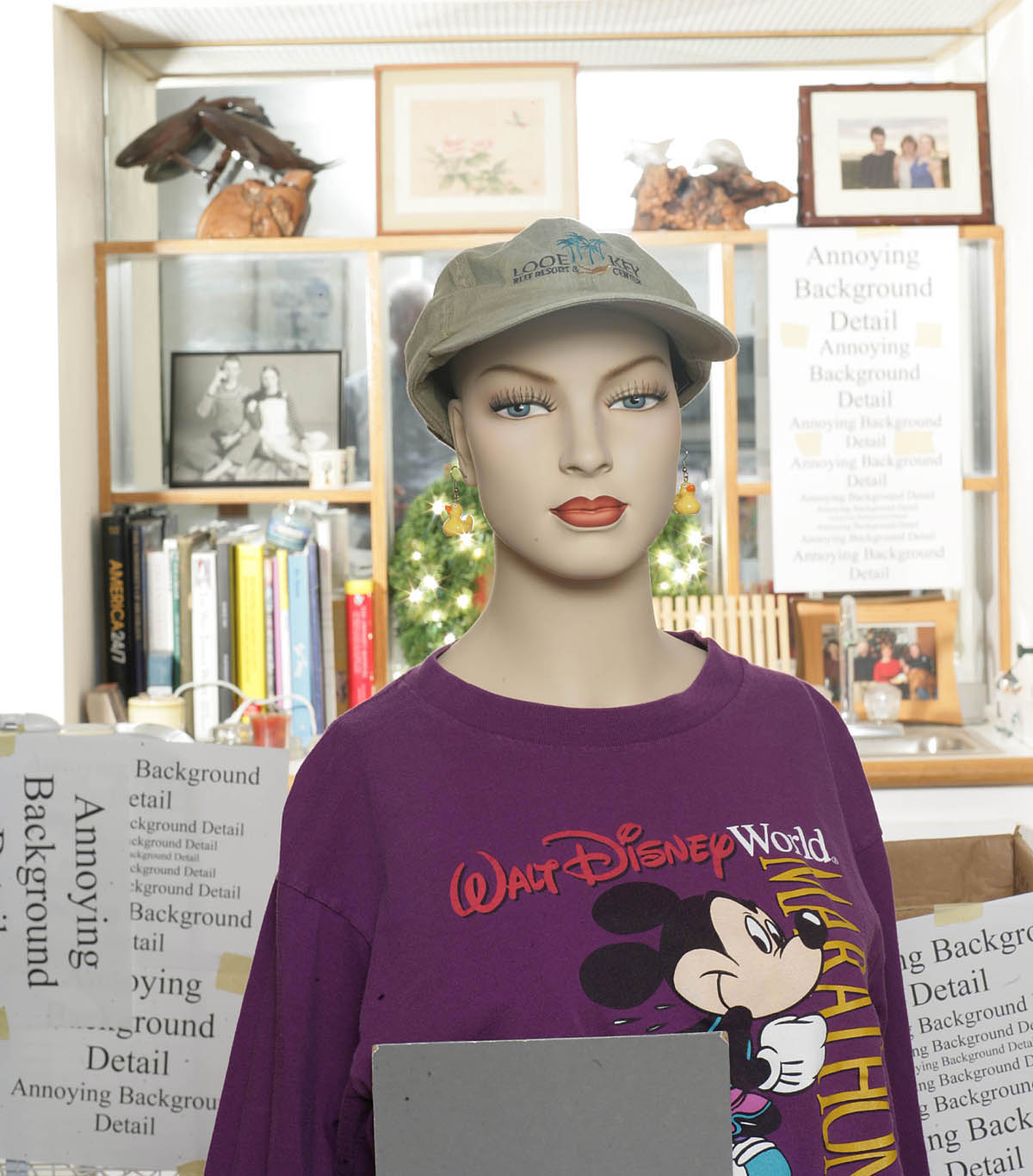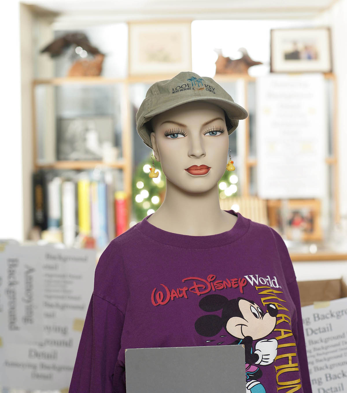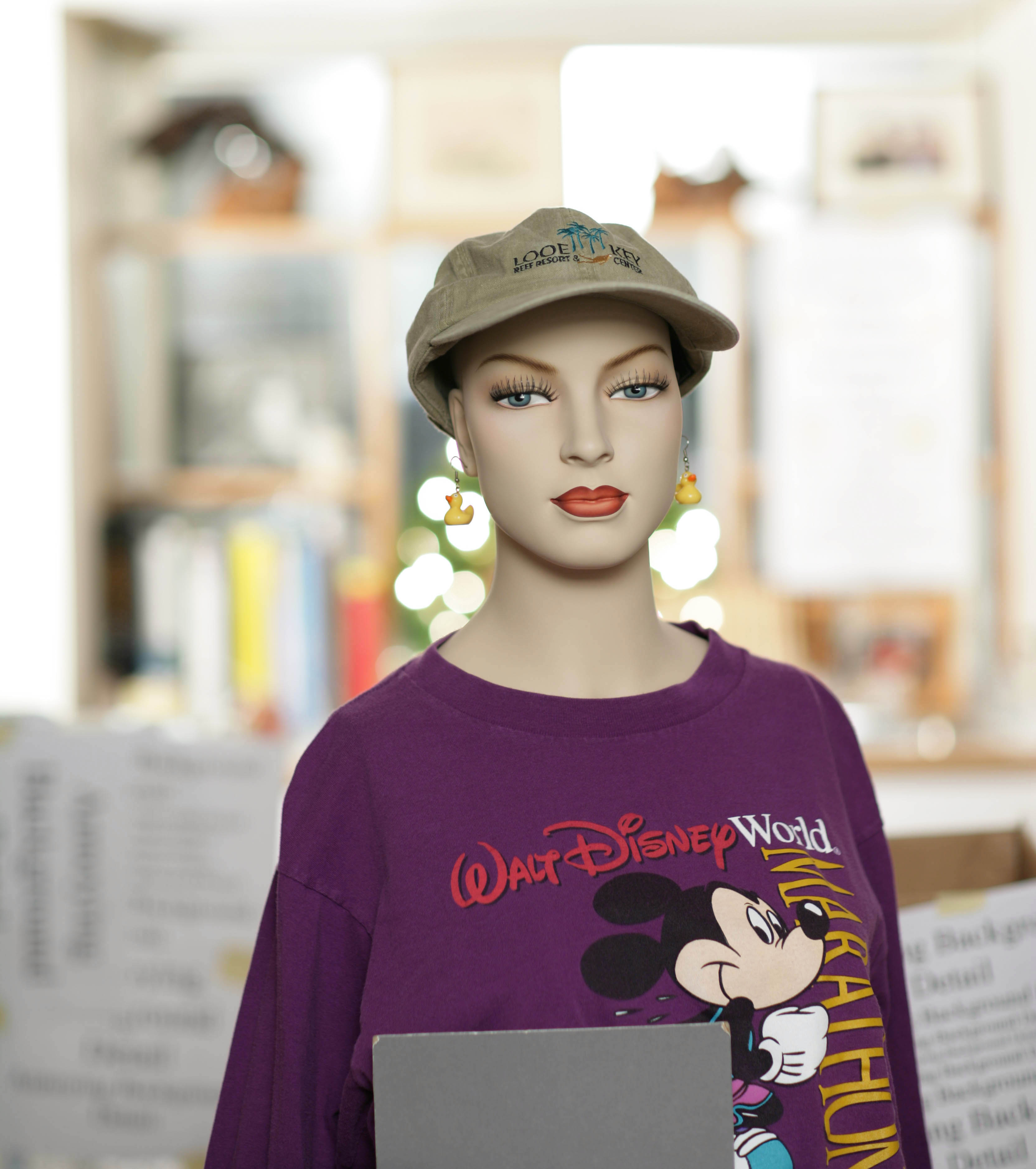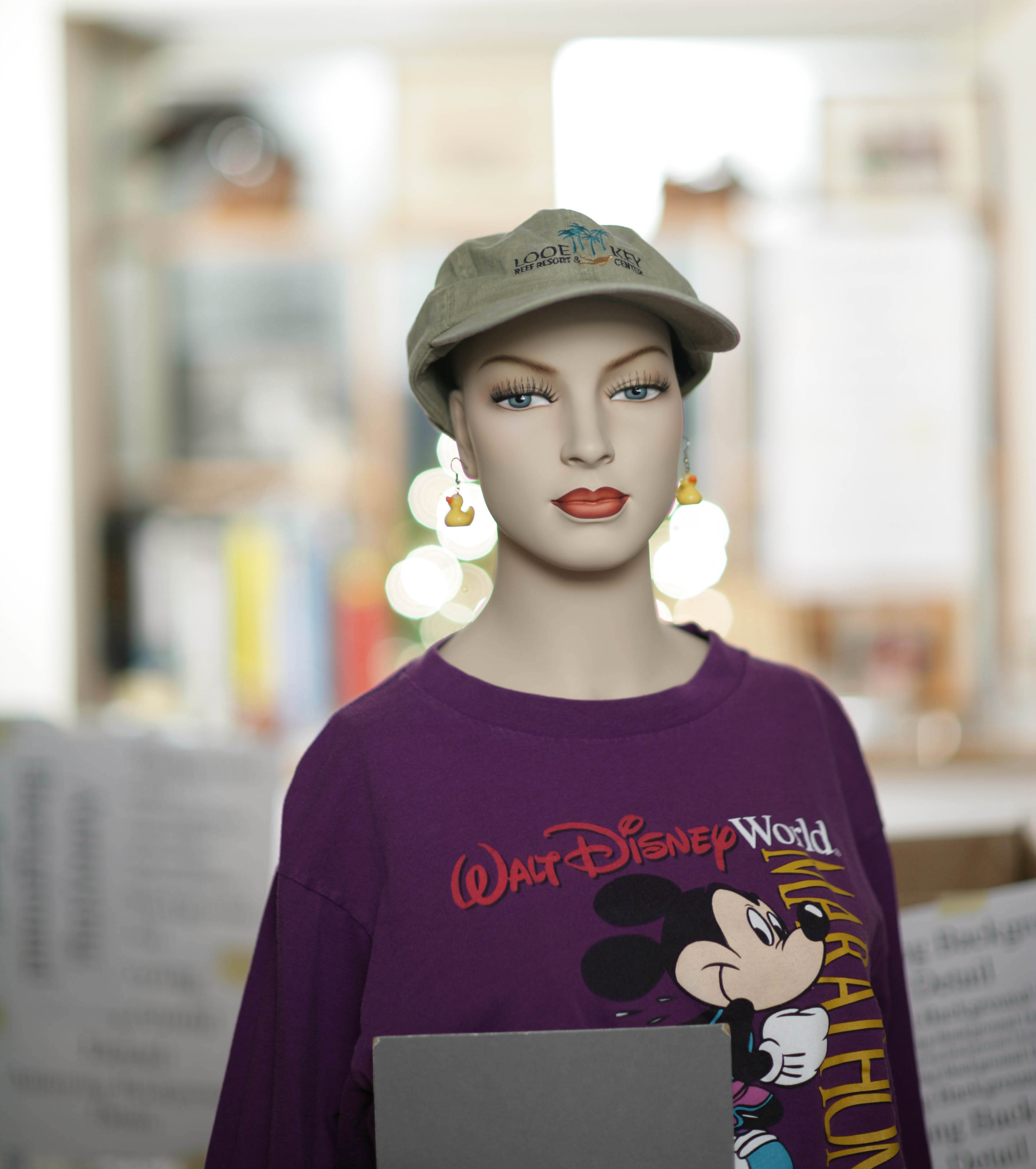Out of focus appearance of mannequin in the f/1.8