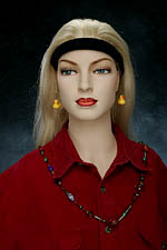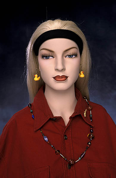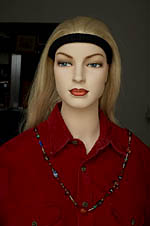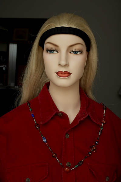 Lighting varies between mannequin shots. Focus comparison on eye and necklace detail.