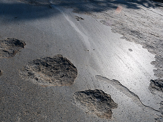 Granite glacial polishing and striations. Olmsted Point. |