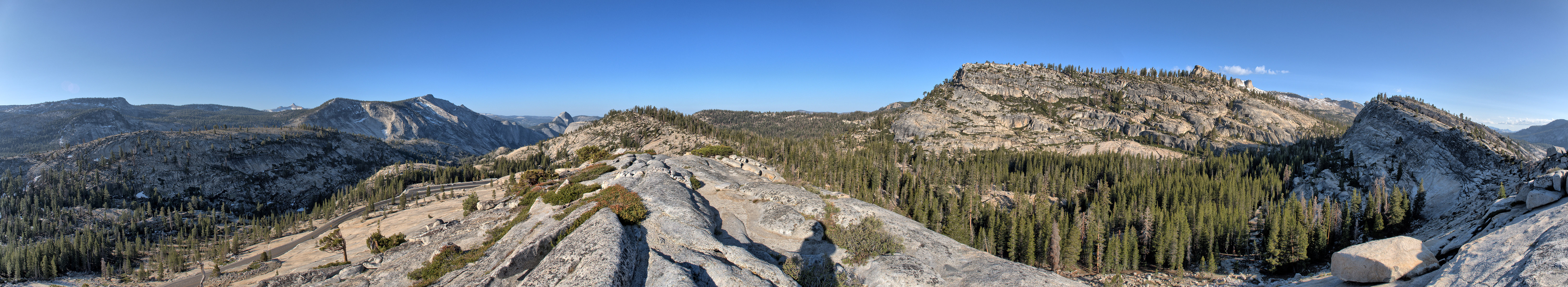Panorama of exposed granite batholith at Olmsted Point. |